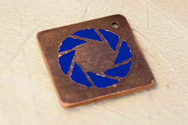 I plan on going more in depth once I make another enamel pin, but for now the best solution I found was to do a toner transfer(Exactly like how its done to make homemade PCBs), and use a salt water etching solution at 12 volts to slowly etch into the copper. This trick allows the etching to happen slow enough so the final product isn't too rough and doesn't lift the toner off of the copper.